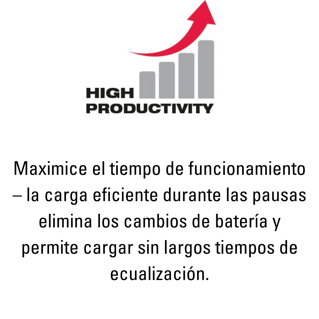 • Velocidades de recarga más rápidas reducen los tiempos de inactividad improductivos