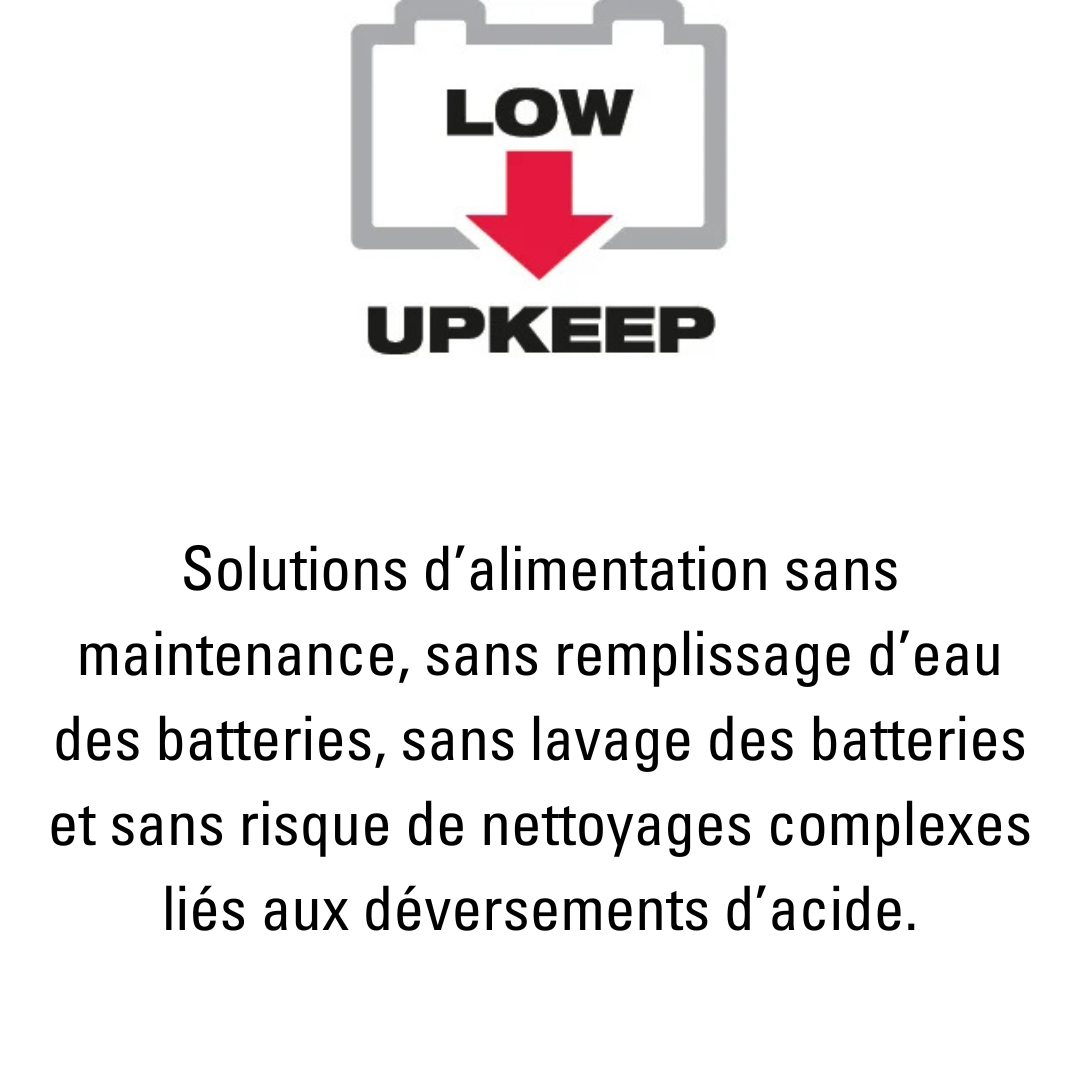 Quelle que soit la taille de votre flotte ou de votre site, les batteries NexSys® iON contribuent à réduire les temps d’arrêt et les coûts de possession des batteries, favorisant ainsi des opérations plus productives et plus rentables.