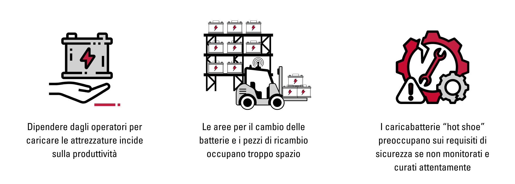 Oltre alle inefficienze operative intrinseche, avere operatori che collegano o cambiano le batterie limita la produttività della vostra flotta di AGV alle attività dei dipendenti, la cui disponibilità non è sempre garantita in vista anche delle stime sulla carenza di 85 mln di lavoratori entro i prossimi anni.